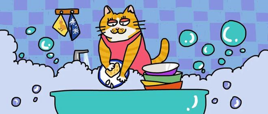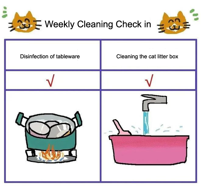Actually, cleaning up well is important for the health of both cats and humans. Washing dishes and vacuuming casually every day can help develop good habits~