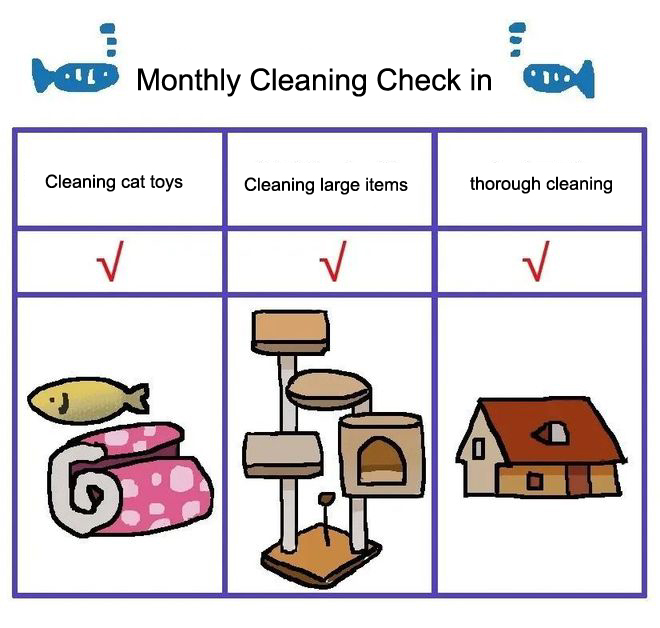 Be sure to use cleaning products that are non-toxic to cats, such as potassium hydrogen persulfate complex salt and hypochlorous acid (please review:), dilute them strictly according to requirements, and it is best to separate cats and let them in after cleaning and drying. Regularly replace items such as cat teaser sticks and cat scratching boards that are difficult to clean.